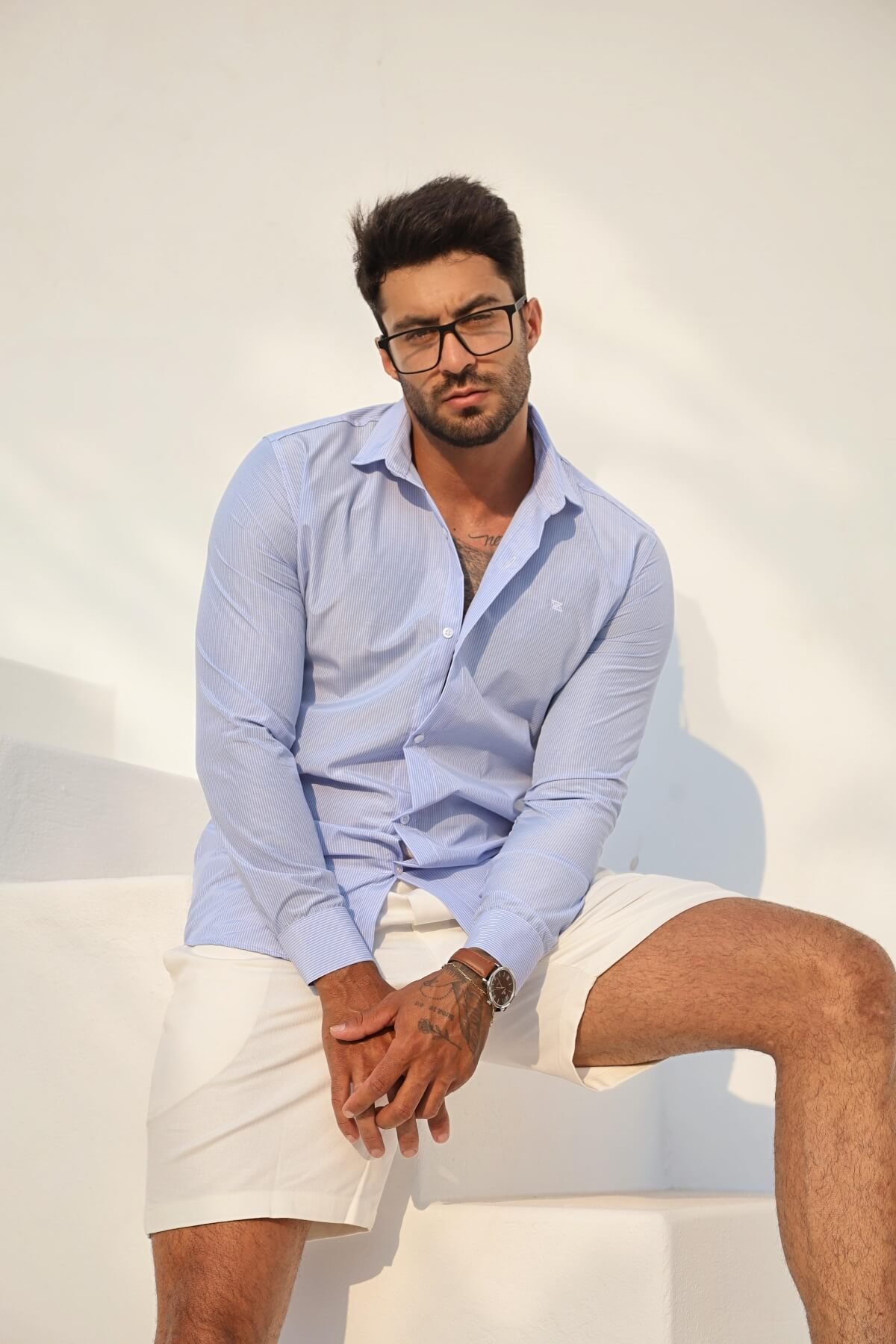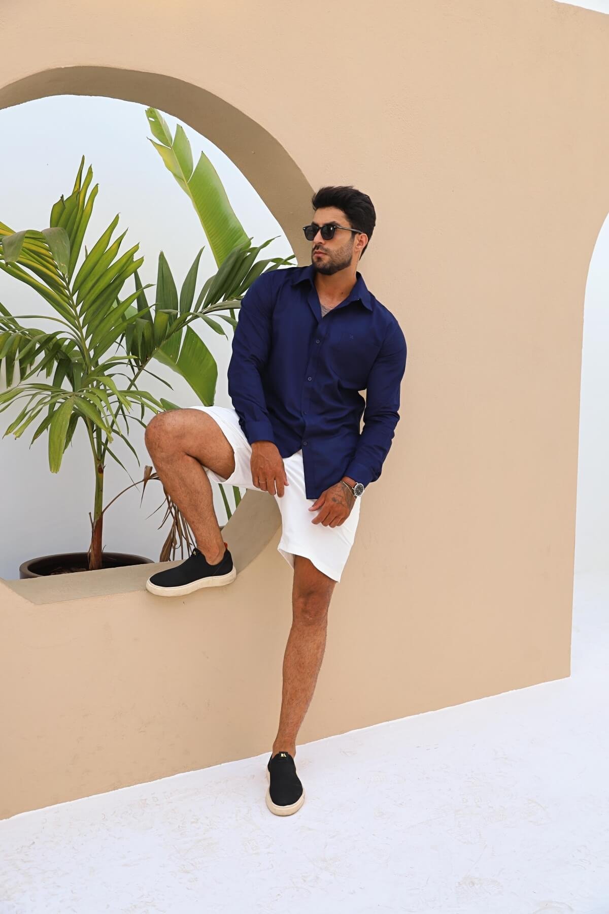 - Dica: Deixe o colarinho aberto e as mangas levemente dobradas para um ar casual e sofisticado. Aposte em tons pastel ou azul-claro para destacar o visual.